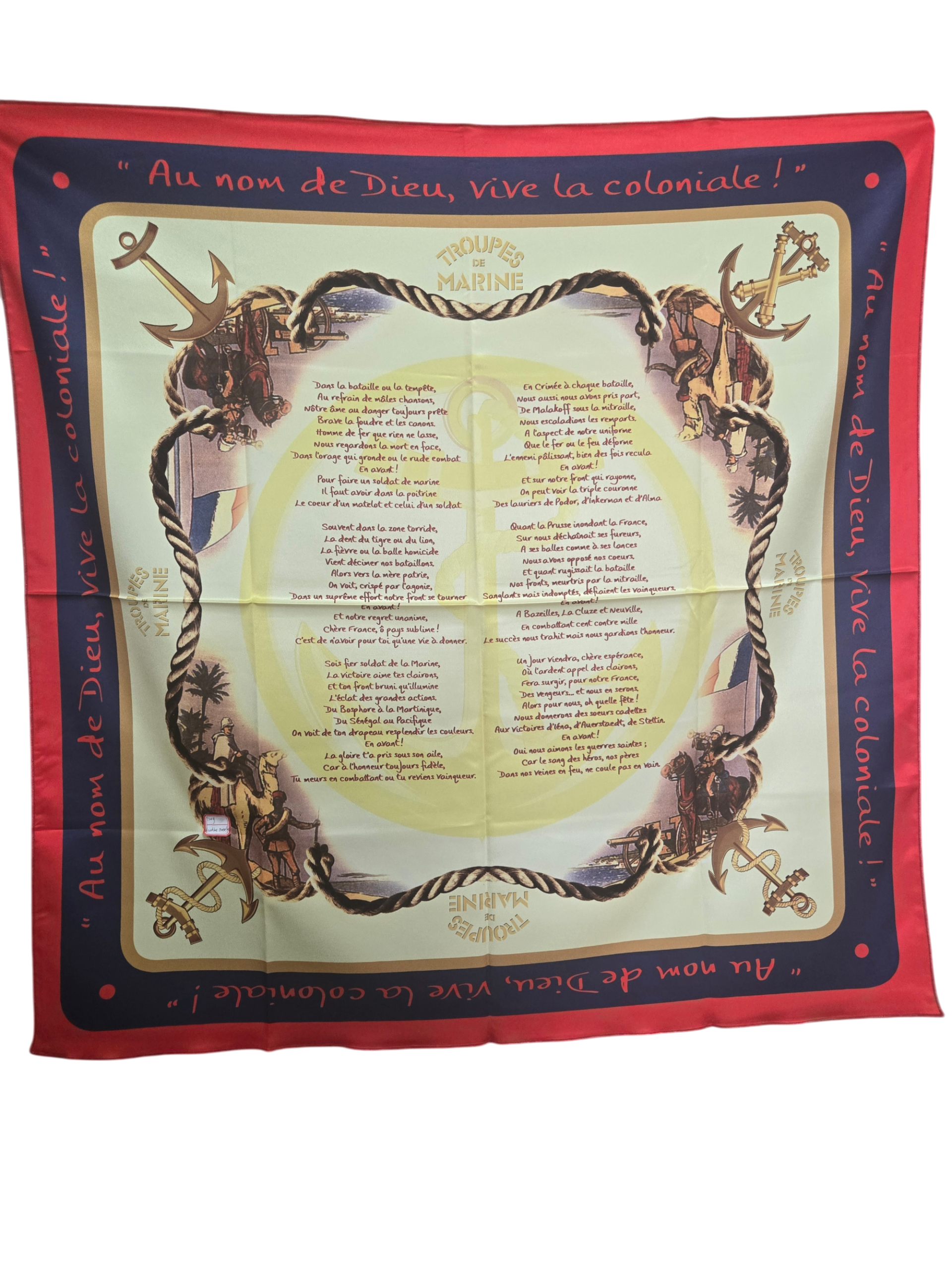 Foulard TDM polyester 89cm X 89 cm Hymne de l’infanterie de Marine